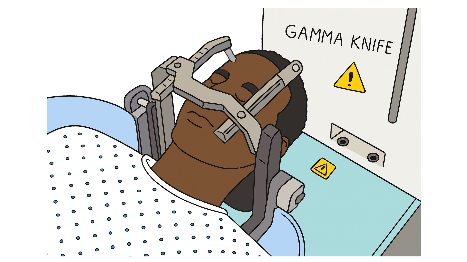 - 적용 부위 한계: 감마나이프는 두개골에 헤드 프레임을 고정하여 치료 부위를 0.5mm 이내의 오차로 조준해야 하는 장비입니다. 이러한 구조적 특성 때문에 뇌 및 두개강 내 종양에만 사용이 가능하며, 호흡 등으로 움직이는 복부 장기나 신체의 다른 부위에는 적용할 수 없습니다.
