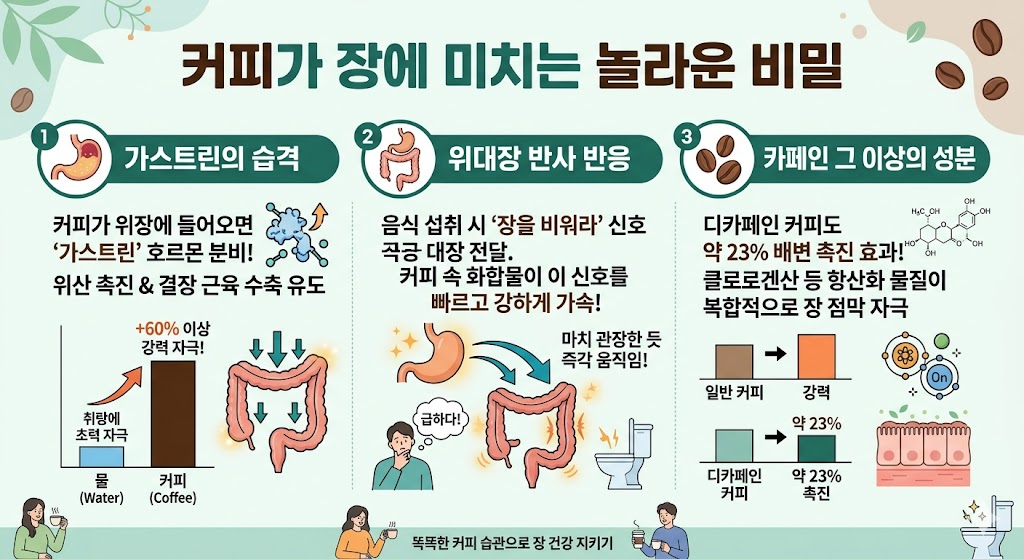 1. 커피는 어떻게 ‘장’을 흔드는가? (과학적 메커니즘)