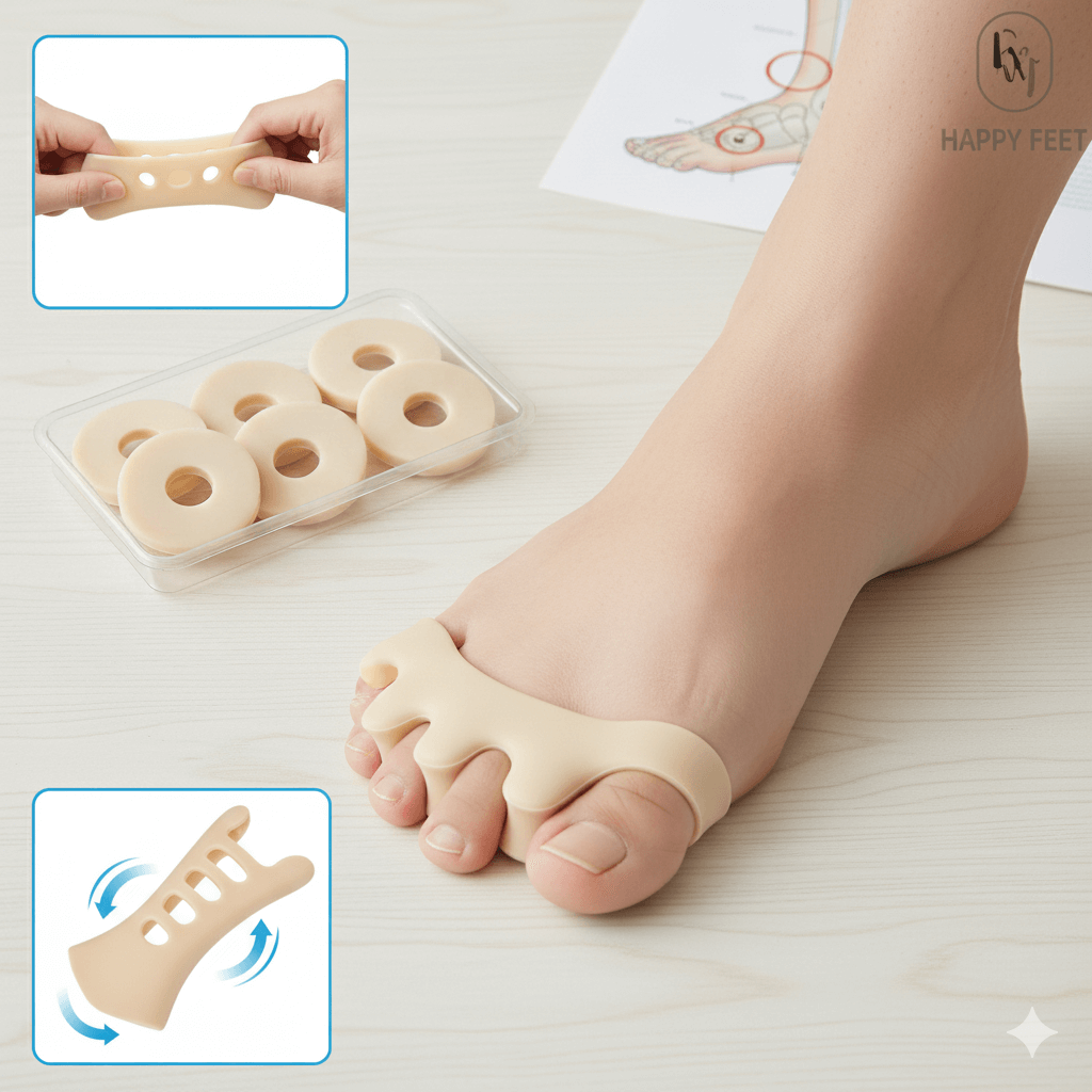 - 발바닥 티눈: 티눈 부위가 뚫린 '도넛 모양의 실리콘 패드'나 '부분 깔창'을 사용해 티눈 부위가 압력을 많이 받지 않도록 도와줍니다. 이는 걸을 때의 통증을 크게 완화하는 데 효과적입니다.